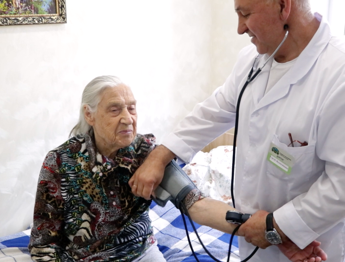Ежедневно пациентов осматривает врач высшей категории. Регулярное наблюдение помогает вовремя выявить возможные проблемы или улучшения и скорректировать лечение. В медицинский уход за лежачими обязательно включен контроль давления, сатурации и сахара. Персонал следит за своевременным приемом лекарств.